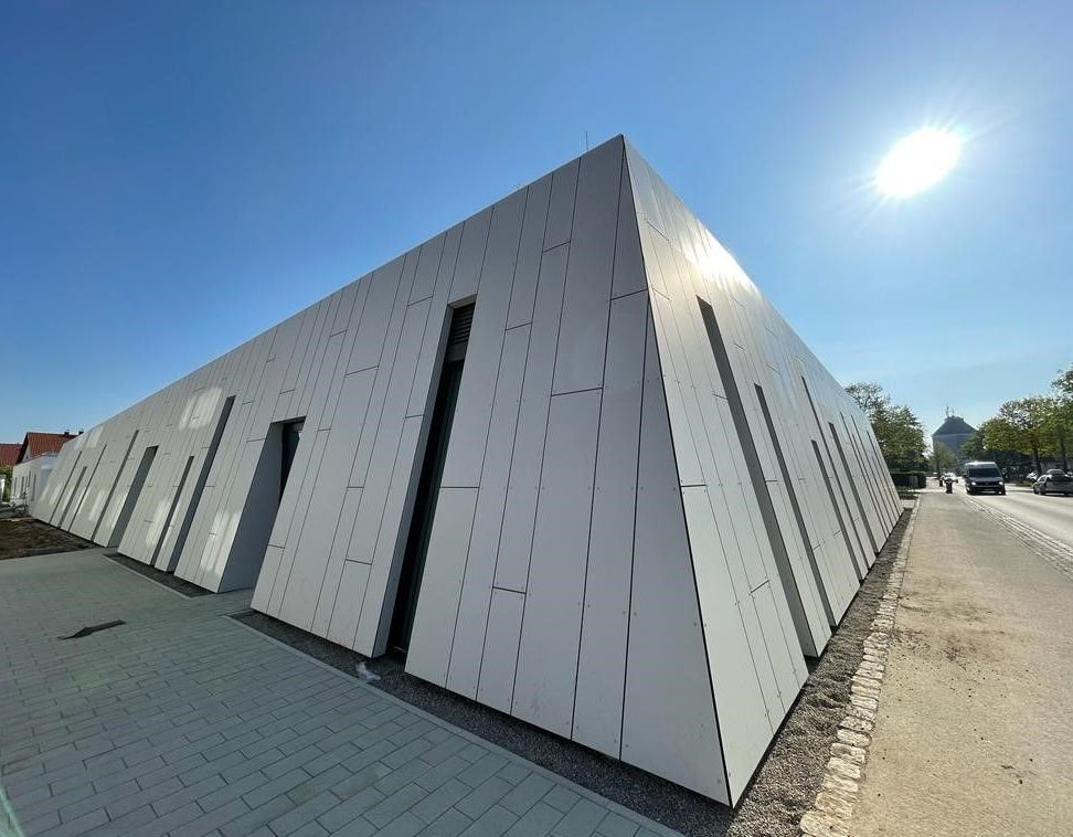 Das Gemeindehaus erhält eine dichte hoch gedämmte Gebäudehülle. Die Glasfassaden bestehen aus einer