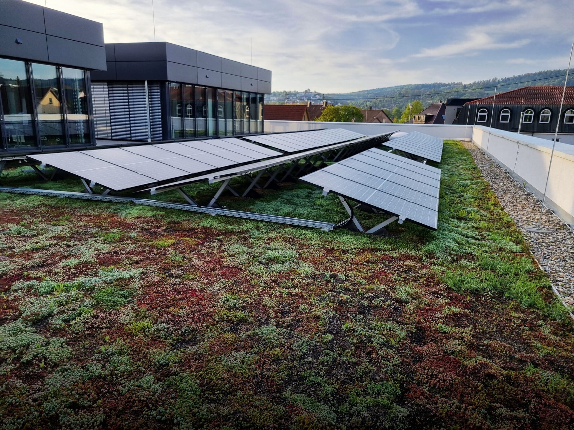 Das Projekt überzeugt auch energetisch: Die Abwärme der Kühltechnik wird zur Beheizung genutzt, Photovoltaik erzeugt Strom direkt auf dem Dach, und extensive Dachbegrünung verbessert das Mikroklima sowie den sommerlichen Wärmeschutz.